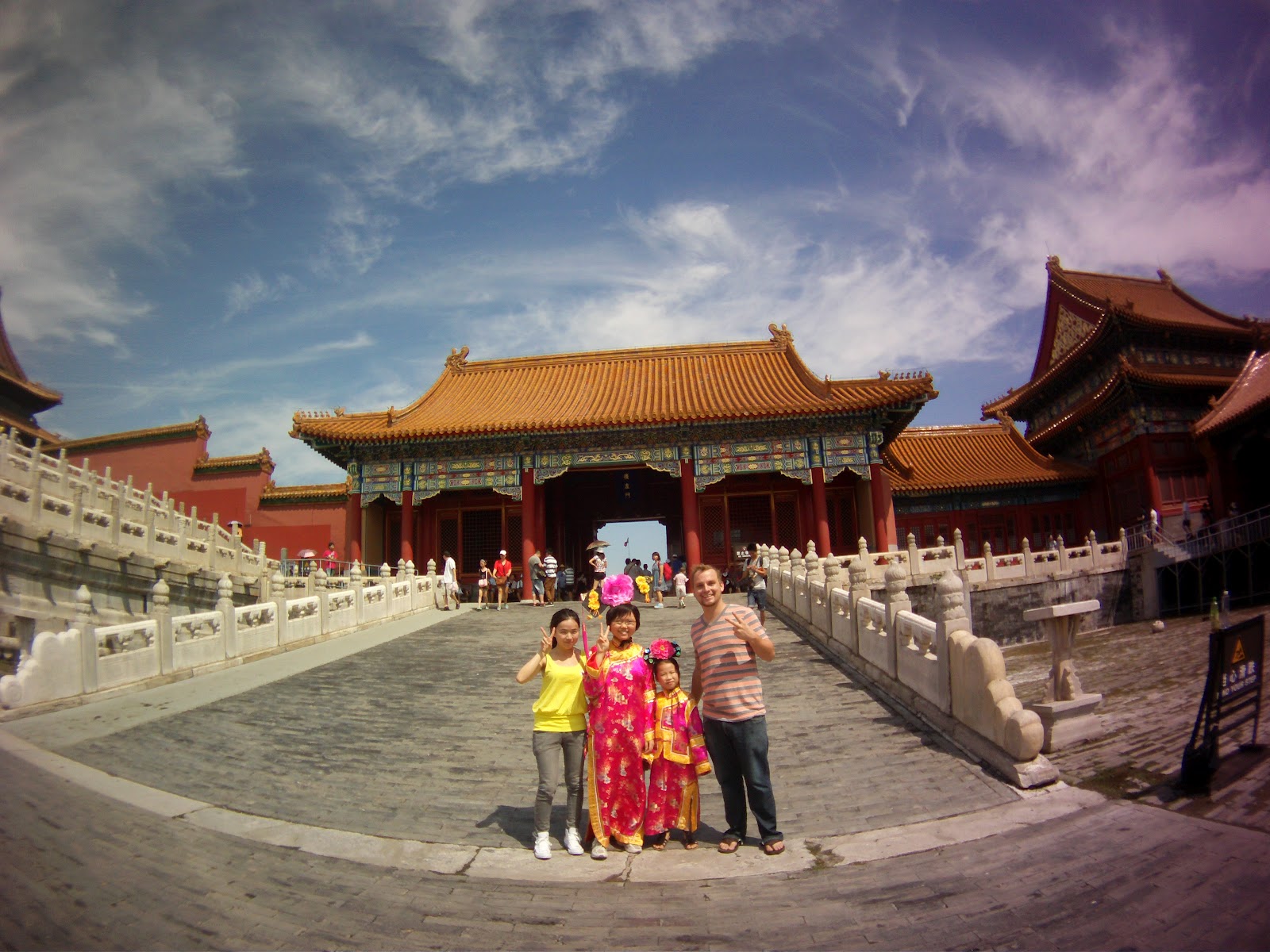 | Notice the yellow roofs behind us... The color of the roofs symbolized your rank in society. This color is the equivalent of royal blue in the west. |